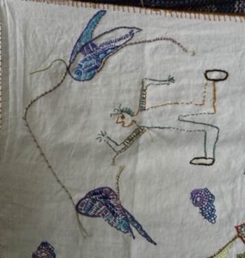 l’auteure qui s’en est déjà largement expliquée. Cela sur le reste d’un drap de
